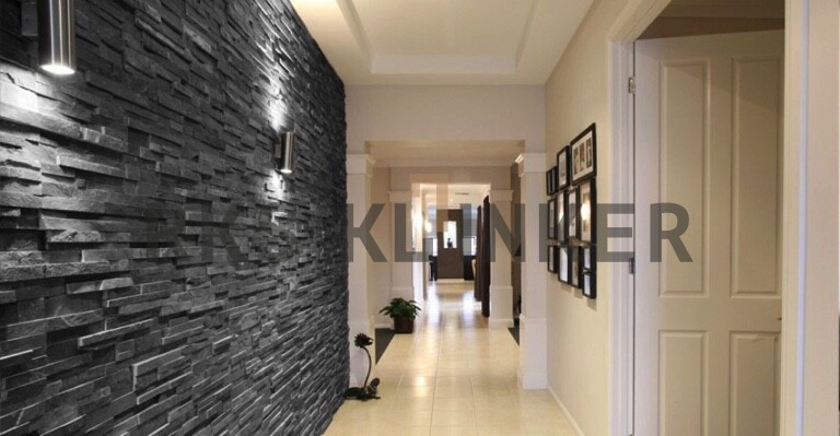 Отделка стен декоративным камнем станет не только эстетичным решением, но и практичным - камень легко моется и не требует особого ухода. Кроме того, черный сланец прекрасно сочетается с различными стилями интерьера, добавляя в них нотку роскоши.